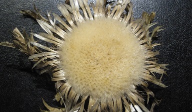 En la imagen, preparado —adquirido por Internet— para infusión elaborado a partir de Carlina acaulis L., brezo, adelfa, árnica, prímula, genciana, acedera, arándano rojo, frambuesa, rosa alpina y hoja de frambuesa; este tipo de infusión requiere un tiempo de reposo de 10-15 minutos y sólo puede ser consumido un máximo de 1-2 veces por día.