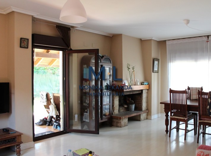 En la planta principal encontramos un amplio salón-comedor con chimenea, muy luminoso, que conecta directamente con el exterior. La cocina está equipada y resulta práctica para el día a día. En esta misma planta se sitúan una habitación y un baño completo, lo que aporta una gran versatilidad. Desde esta planta se accede al jardín, que cuenta con zona de barbacoa, así como a un porche cubierto, ideal para disfrutar del exterior en cualquier época del año.